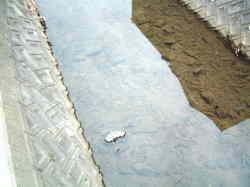 家庭排水により、水がとても汚れているのがわかりますよね。