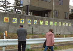 帰りがけに、会館の出口に竹炭を抱えたおじさんが声をかけてきました。「あんたたちどこから来たんだね」ということから話が始まり、「市民と子供たちががんばって汚い川をきれいにした実例があるから見に来ないか」と誘われました。