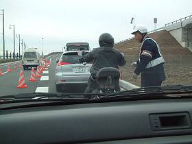 ■自家用車利用なら一般道、北条向山線(名鉄常滑駅〜市役所〜りんくうICへ)か 一般道、空港連絡道路(旧浜田線、上図の餅屋さんのある多屋5丁目交差点を西進) いずれも今までになかった中央分離帯ができていることをお忘れなく!! (※下の写真) また、郵便局や常滑警察署前を通って市役所へ向かう旧道を行く場合は、 くれぐれも合流に注意してください。 |
