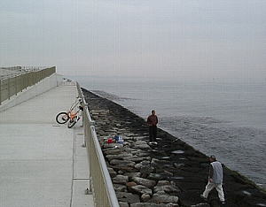 フェリーの利用者も一旦ここで降りて セントレア大橋(写真奥)を渡って 中部国際空港に入ります。 |