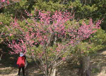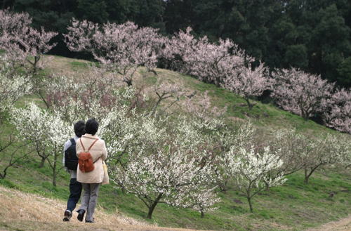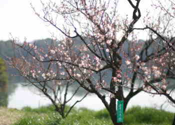 昭和34年の伊勢湾台風でかなりの被害を受け、さらに佐布里ダムの建設により水没し、佐布里池の梅林は、現在ごく一部が残るのみとなってしまいました。しかし、地元や愛知県の協力で苗が植えられ、今では25種類、約1800本に増え、梅林が復活しました。