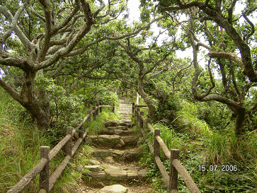 羽豆岬先端で山を巡る遊歩道は 「うばめがしトンネル」で 国指定の天然記念物になっています。 いつのまにか「ロマンス・ロード」という名前がつき、 若いカップルがたくさん訪れています。 |