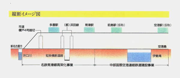 ところが、空港アクセス道路が常滑市街地を迂回し、浜田川(通称 ごんじろ川)を通る形で変更され、その道路は現在掘割式で空港へ至るという計画になっています。(掘割式は実は大変な問題を含んでいるようですが…)