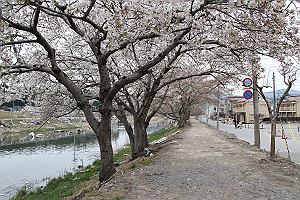 南三陸町から気仙沼に入りました。 入るとすぐに川があり、5月だというのに桜は満開でした。さすがは東北。それだけ気温が低く桜前線はこんなに違うのです。そして、堤防の堤も桜も自然も、何事もなかったかのよう。 けれども、左側の川にゴミのように見えますが、車や家の壊れた残骸です。