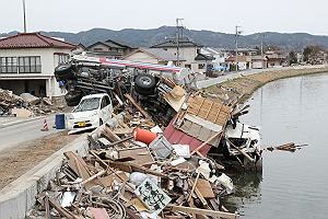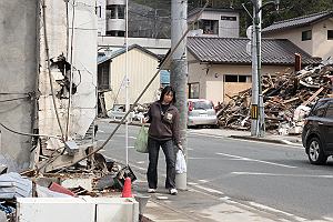 町中を歩くと、ほとんどこのような風景です。だた、最低限のインフラとして、車が走る道路については、きれいに片付けられていました。 気仙沼市の役所へ行ってボランティア登録をしようとしたのですが、ゴールデンウィークはお断りしますとのことでした。 町の商店の方々は、掃除でもいいから手伝ってもらえるならばというような感じでしたが・・・