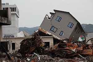 家が完全に傾いているのが悲惨さを強調しているようです。