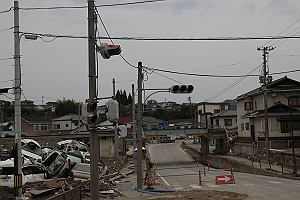 信号機に電気がついていないのがわかると思います。ここから先は、まさにゴーストタウン。 壊れている家もあるし、残っている家もありましたが、電気がないため、夜になると真っ暗です。 町中、いたるところ信号が止まっていて、交差点は、最徐行で通行します。
