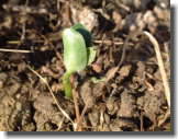 | 5月13日 待望の芽が出ました。 ずいぶん痩せた畑だったけど、 自然の力はやっぱりスゴイ!! これは、枝豆だったかな? |