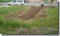 5月5日 「やったぁ!1本めの畝が完成」想像以上の根っこ に苦しめられ思いのほか 時間がかかった畝作り。 |
