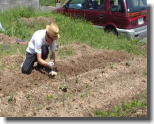 6月3日 「う〜ん。次は何を植えよう かなぁ。」ひとり、畝作りに励む オーナー。1ヶ月前は、草が生 い茂っていたなんて、想像でき ないくらい。益々やる気に!? |