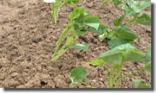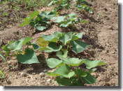 5月20日 本葉も出始め、だんだん畑らし くなってきました。こうなると今度 は収穫が楽しみ。 |