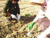 第1畑と比較すると、その広さは およそ100倍。 村民一同、「広〜い!」を連発。 広くなった分、作業量は増すが、 無農薬を目指した収穫への夢は どんどん膨らんでいった。 |