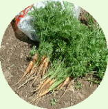 ちょっと小ぶりですが、「おしん」 という大根です。葉っぱも味噌汁の具や 炒め物にして無駄なく利用。 |
