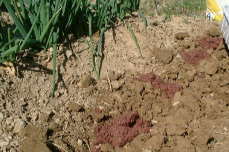 ねぎの土寄せ : 追肥は自然の物(米ぬか、もみ殻、小豆のかすなど)を与えた。