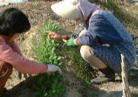 | 間引き作業は何だか悲しい。 せっかく頑張って生長したのに・・・・。 心を鬼にして引っこ抜く。 やがて彼らは、味噌汁の具や炒め物になり、食べられてしまった。 まるで最近はやりのゲームソフト ♪「ピクミン」のように・・・。 |