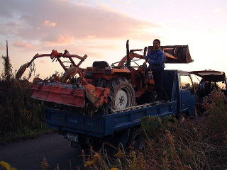 自然農法の伊藤さんが次の畑約10アールに手を入れることになった。 しかし、最近スーパーへの出荷が順調で、ますます忙しくなった伊藤さん、 「自分たちの手で機械を使わずにやりたい」と言っていたが、 不本意ながら今回に限り「機械の力」を借りて耕すことにした。 そこで、お助けマンこと豊明の小嶋さんとトラクターに応援に来てもらうことになった。 |