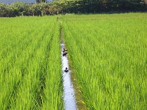 | 8/17 出穂間近 この少し広い溝は鴨の発着場所になっています。 |