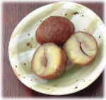 ![]() 栗 ・・・300g 栗 ・・・500g <アク取り> 重曹(タンサン) ・・・小さじ 1杯 <味つけ> ザラメ・三温糖など ・・・50g〜栗と同量 塩 ・・・ ひとつまみ (ブランデー・・・大さじ 1杯 香りづけ) |