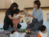 H8 母子保健計画のアンケートを実施したところ、 「地域に遊び場が欲しい。」という声が多く聞かれた。 H9 要望に答え、すくすく広場 が開設された。 H14 ボランティアグループつくしんぼうの方々の協力により、 4月から毎週月曜日に開催されることになった。 現在、20組程の親子が利用している。 |