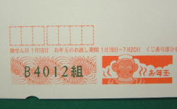 官製年賀はがきにも盲人用があり、下の写真のようなくぼみがついています。(特定郵便局だと取り扱っていないところがありますが、常滑郵便局は取り扱っていました。) |