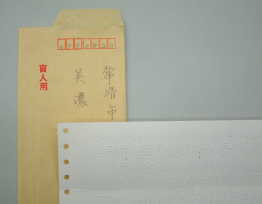 封書は盲人用と朱書きし、右の隅を開けてのりづけします。 |