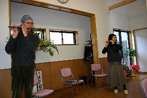 後半は 岐阜在住の原田さん ご夫妻による 篠笛の演奏でした。 ご主人が定年後の趣味にと 50代前半から始められ、 今では篠竹を切り出して 笛も作ってしまうほど 奥様は最近始めたばかり、 と謙遜されていましたが、 なかなかどうして! ご夫婦中睦まじい演奏も ゆうサロンのオープニングに ぴったりでした。 |