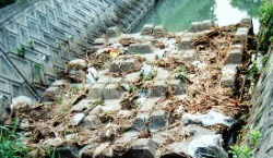 川の中もごみや汚れでいっぱいです。