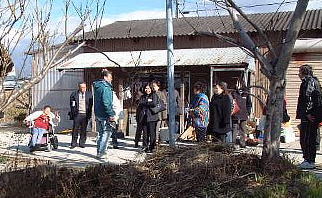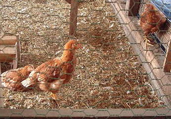 ここは鶏密度も低く広びろ、 おまけに日当たり・風通しとも最高!! 日向ぼっこでもしているのかと思いきや、 上の写真のように整列して水を飲んでいたのでした。 |