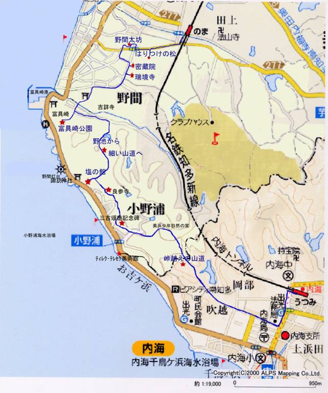 | あちこちぶらりの一言 途中休憩を入れ、写真を撮りながら、2時間半ほど歩きましたが、あらためて知多半島の広さを実感する感慨深い1日となりました。 なお、美浜町には名鉄河和口駅と南知多ビーチランド・名鉄知多奥田を結ぶ全周約11km、徒歩で約2時間30分の「オレンジラインハイキングコース」があります。 今回は自然がまだ残る南知多になりましたが、次回は常滑、知多方向で散策したいと考えております。ルート、見所などの皆様のご紹介をお待ちしますので、よろしくお願いします。 |