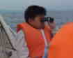 | うみがめ・・さんのHPを見てと参加を決めたモリタさん一家4人を含む11名が常滑マリーナ(古場町)から野間付近の海を調査したが観察できず。名古屋港からの船は6頭。三重県河芸からの船は河芸〜師崎一帯で1頭。三河湾からの船は蒲郡で2頭。「今日は波のせいもあった。でも、少なくなってきているのは確か」と林正道さん |