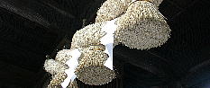 | 12/2 煙突に登るサンタ常滑・やきもの散歩道で「登窯」の近くにあるれんが煙突にサンタクロースが登ろうとしている飾りが登場した。昔、サンタは煙突から入ってくると信じていた。そこで問題になったのが私の家には、煙突がない。大問題だ。サンタが入れないじゃないと心配になった私は、寒空の夜、窓を全開にして寝たのを思い出した。良い子のみなさん!私の経験上サンタは、煙突がなくても大丈夫。あ〜あの頃の純粋な心がほしい。 |