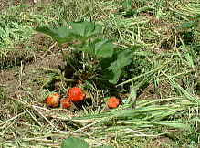 冬の間、元気がなく生育が心配されたイチゴでしたが、日差しが暖かくなるにつれ、緑の葉を広げ可憐な花をいっぱい咲かせました。 今では、真っ赤な実を次から次につけはじめ、私達を喜ばせてくれています。 素人の作ったイチゴはすっぱいと聞きますが、甘味もあり予想外の収穫。近隣のカラスもまだ味を知らないのか、鳥や虫などの被害もほとんどありませんでした。 |