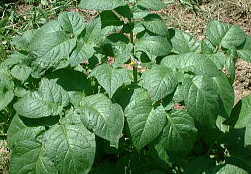 じゃがいもは第2畑より生育がいい。 理由はわからないが、写真中央あたりには 白い花も・・・。 ♪わかるかなぁ?わかんねぇだろうなぁ・・・? |