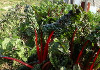 ■蒔きどき-5月、9月。種は、播く前に1昼夜水につけておくと発芽がそろう。 ■05/04/17 市内在住の斉田さんから ■その名のとおり一年中青々、赤々(芯の色は5色とも7色とも)しています。昨年の台風の影響で葉物が高かったときなど、いざというときには助かる野菜です。 ■生のまま刻んでサラダにしてよし、ほうれん草のようにおひたしにしてよし。 ■06/たくさんあります。 ■無くなりました。 |