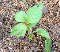 ■蒔きどき- ■04/09/ 市内在住の中野さんからいただいた苗から採取 ■京都府舞鶴万願寺地区で栽培されていて「伝統野菜に準ずる」という扱いを受けている品種 ■全く辛くない品種で、10cmを越える大きさになり肉厚大型品種です。そんなこととはつゆ知らず、生育がうまくいかなかったという中野さんに差し上げたところ「自然農では大きくなりませんか?」と言われてしまいました。実は辛くなっては大変と半分ぐらい(5センチくらい)の大きさで収穫していたのです。 ■絶えました。 |