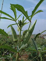 ■蒔きどき-5月下旬〜6月上旬 ■2005/04 市内在住の杉江さんを介して ■種用は長さ25cm(オオオクラより細長い)。アフリカ原産で夏が旬。普通のオクラは五角形なのに対し沖縄のものは角が無く丸みを帯びてその形から丸オクラ、レディースフィンガーとも呼ばれる。この美しい姿!皮目のこりこり感と中のねっとり感が美味しい。 ■お勧めです。 |