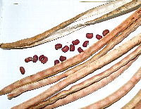 ■蒔きどき-5月初旬〜下旬 ■03/10/ 市内在住の加藤さんから ■加藤さんも2年前九州の友だちからもらったという。つるがぐんぐん伸びていくので草抑えにぴったりでは?作りやすくて、アズキに比べ格段の収量がある。 ■若い柔らかそうなサヤを塩茹でして十六ササゲのように食べてみたが青臭くて美味しくなかった。ネットで調べると、大納言アズキより大粒で皮が硬いので関東の武家社会では「腹が切れない」と重用したという。自然農を楽しむ会の総会で赤飯のおにぎりを試食後、載り面の草抑えに植えてもらうことになった。 餡にしても美味。2007年2月の「自然農を楽しむ会(レシピなども)」収穫祭で試食会をした。 ■お勧めです。 |