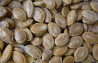 ■蒔きどき-4月下旬〜(5/3) ■2003年の12月に岐阜県瑞浪市にある『WEEK END 百姓学校 2002.9.21〜22』を愛知県常滑市の『自然農を楽しむ会』が交流訪問したときの記念に贈られた1個から種を採り、10粒くらいづつに分けてもらったもの。 ■勝手に「ヘチマカボチャ」と呼んでいたら後日、「スオウカボチャ」と教えていただいたが、インターネットで調べても出てこない。後日、「岐阜県丹生川村の特産『宿儺(スクナ)カボチャ』と判明。 ・常滑でも長さが約40センチくらいで、色もよく、味は美味しく大好評のものができたとのこと。 ・静岡のF様より栽培のポイントなど⇒宿儺(すくな)カボチャの元肥は、牛糞+堆肥で、土の改良剤として「籾殻+米ぬか」。苗の植付けのさいに、少量の化成肥料を根元に土に混ぜる。実が成り始めたら、根元の周りの土に有機質配合肥料(油粕+魚粉などが含まれた)物を混ぜてやると、甘味が増し味が良くなる。他の野菜でも同様です。試して見て下さい、との情報あり。 ■百姓学校由来のものは無くなりましたが、市内で買ったものから種を採取 |
