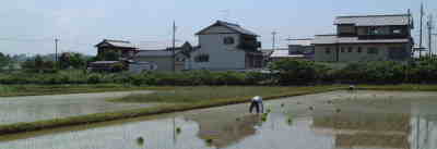 | 今年の田植えはまだ始めておりませんが、サラリーマン土日百姓ですので 例年のように5月末から6月半ばの2〜3週間で植えたいと思っています。 今までは、苗代で25センチ程度に育った成苗を植えていましたが 今年は箱で育てた10センチ程度の苗を手植えする予定です。 上の写真は野田さん提供 |