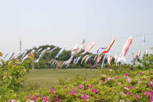 ![]() 常滑市、小脇公園の鯉のぼりとつつじ |